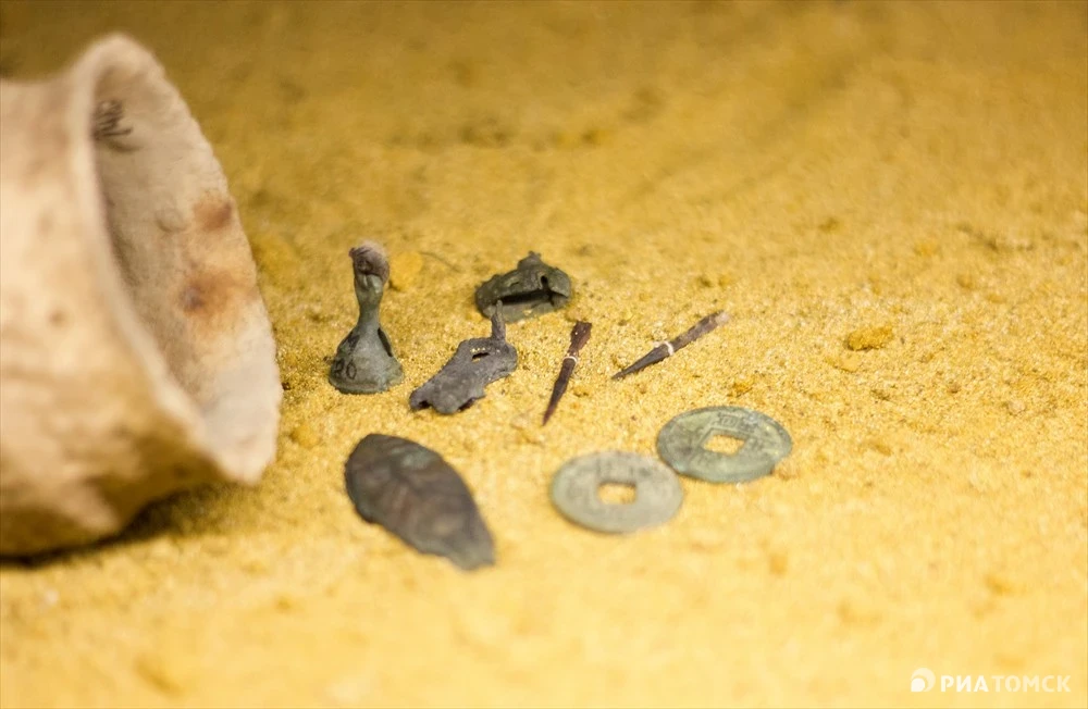 На выставке представлены материалы из музея археологии и этнографии Сибири ТГУ и северского музея. Концепция выставки разработана сотрудниками лаборатории междисциплинарных археологических исследований ТГУ "Артефакт".