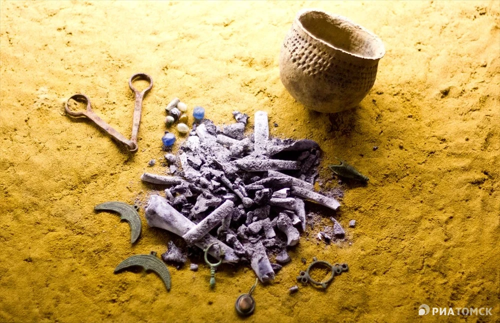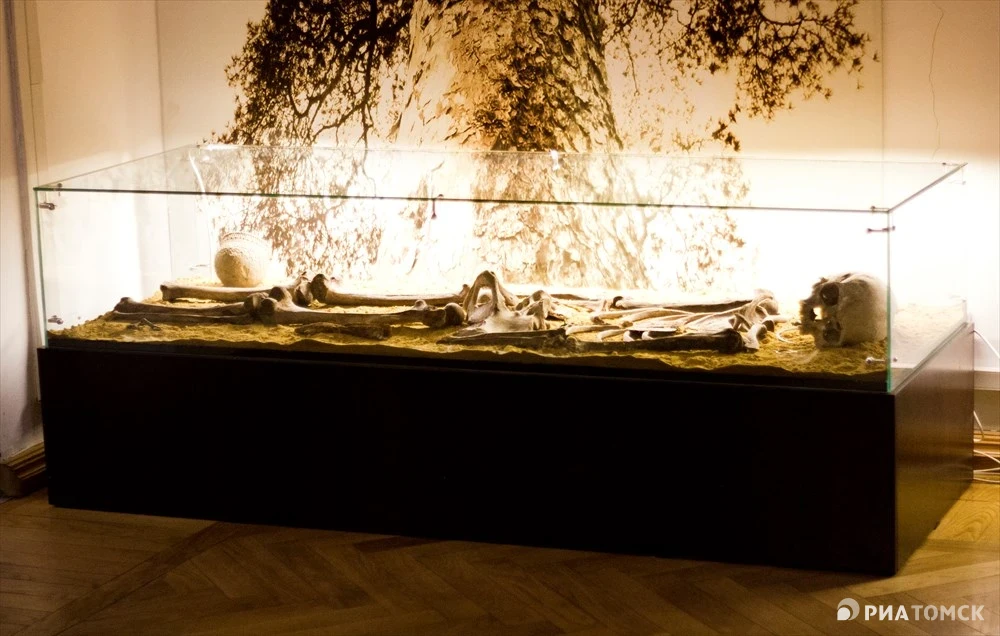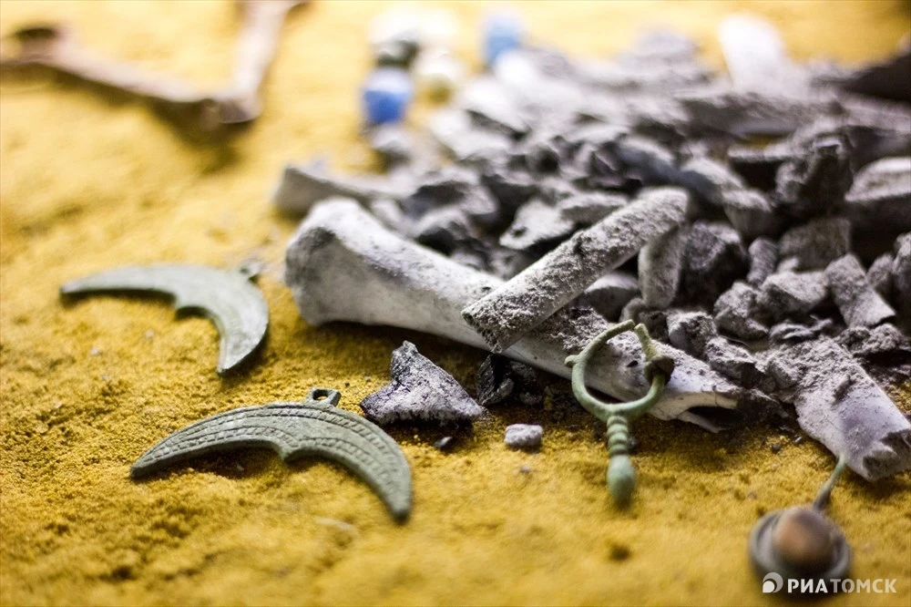 На выставке "Круговорот жизни и смерти в сибирском шаманизме" представлены находки томских археологов, обнаруженные при раскопках Тимирязевского могильника – одного из памятников Тимирязевского археологического комплекса, расположенного в черте нашего города.