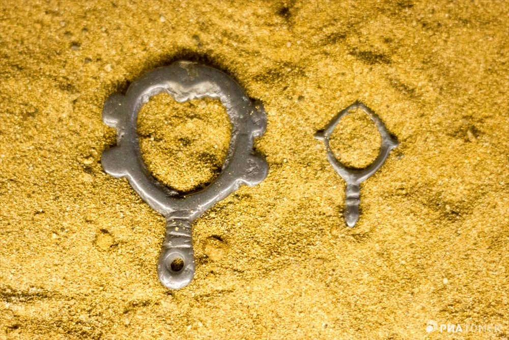 Также археологи находят изображения человеческих лиц (личин) и фигурки людей, отлитые из бронзы. На фото: бронзовая личина, найденная во время раскопок Тимирязевского курганного могильника I.