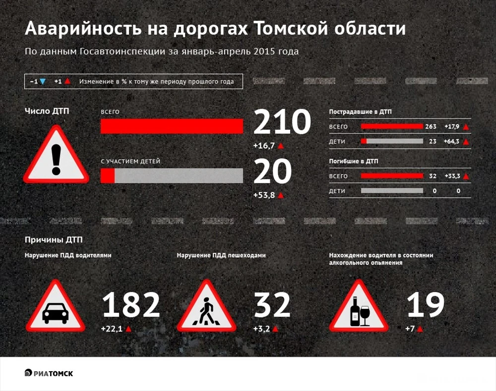 По данным ГИБДД по Томской области, с начала 2015 года в регионе произошло 210 ДТП, в которых погибли 32 и ранены 263 человека.