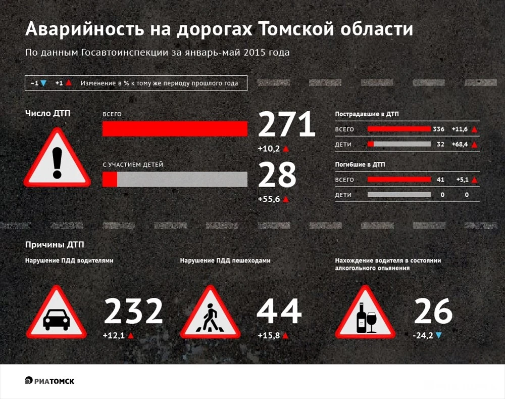 По данным ГИБДД по Томской области, с начала 2015 года в регионе произошло 271 ДТП, в которых погиб 41 и ранены 336 человек.