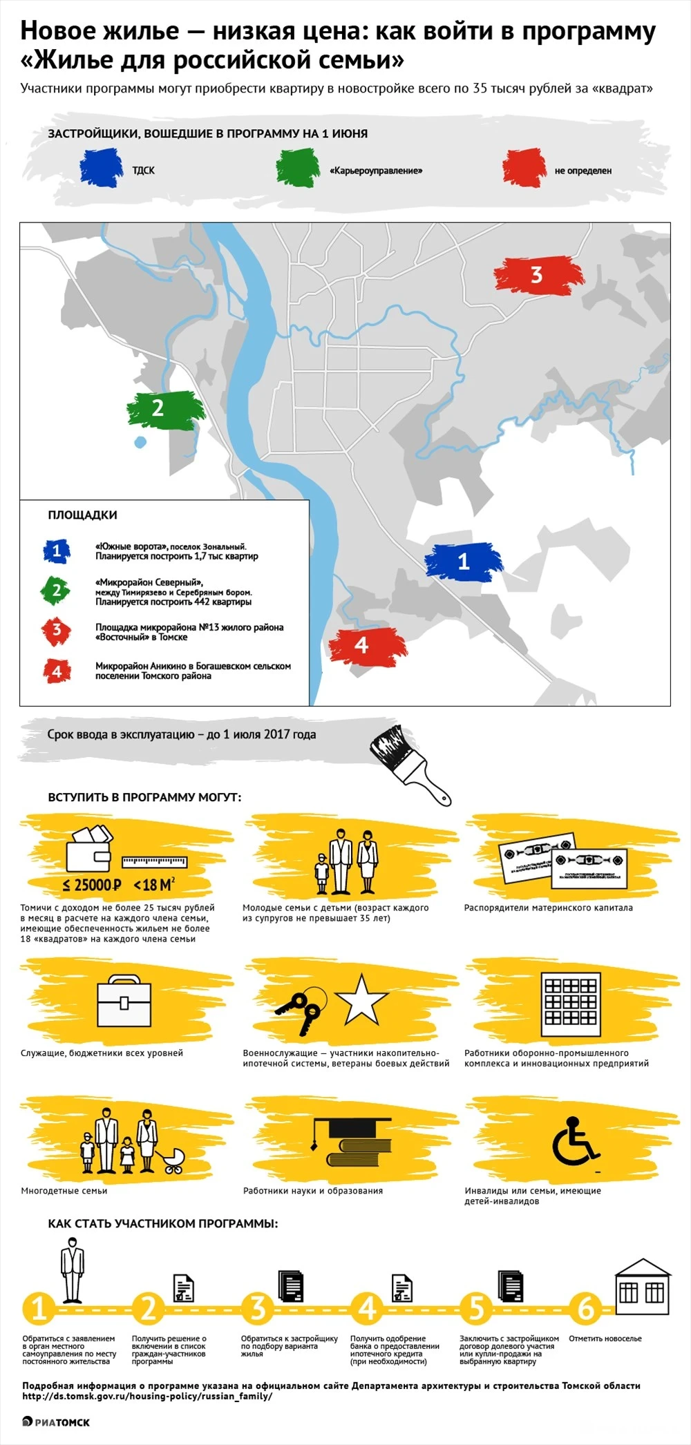 Участникам программы предоставляется возможность приобрести квартиру в новостройке всего за 35 тысяч рублей за "квадрат". Уже принято более 560 заявлений от жителей Томской области на участие в программе. Кто, на каких условиях и какую квартиру можно купить по госпрограмме – в инфографике РИА Томск.