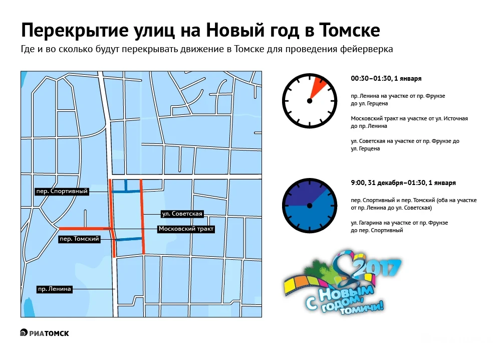 Перекрытие движения транспорта в Томске в Новый год-2017