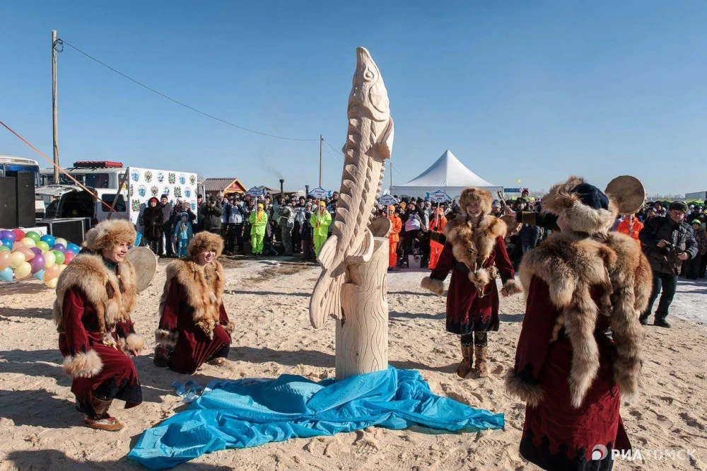 В этом году у "Народный рыбалки" появился новый символ – трехметровый тотем в виде осетра, изготовленный из кедра томским мастером Александром Царегородцевым. На открытии фестиваля вокруг него проходили ритуальные танцы коренных северных народов.