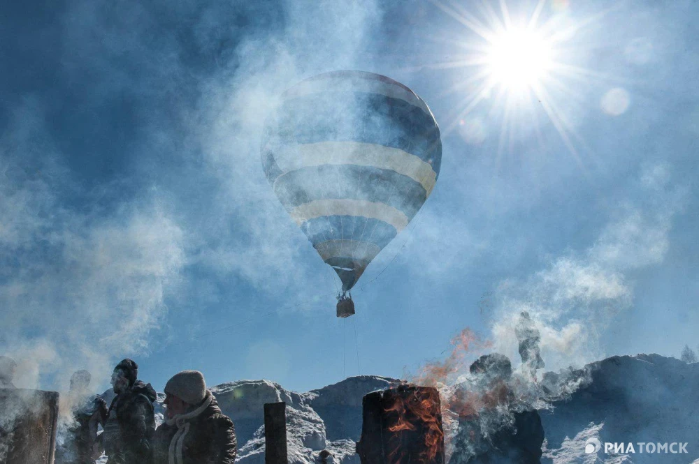 Можно было прокатиться на собачьих упряжках или полетать на воздушном шаре. Около озера развернулась небольшая ярмарка, были организованы палатки для обогрева и питание.