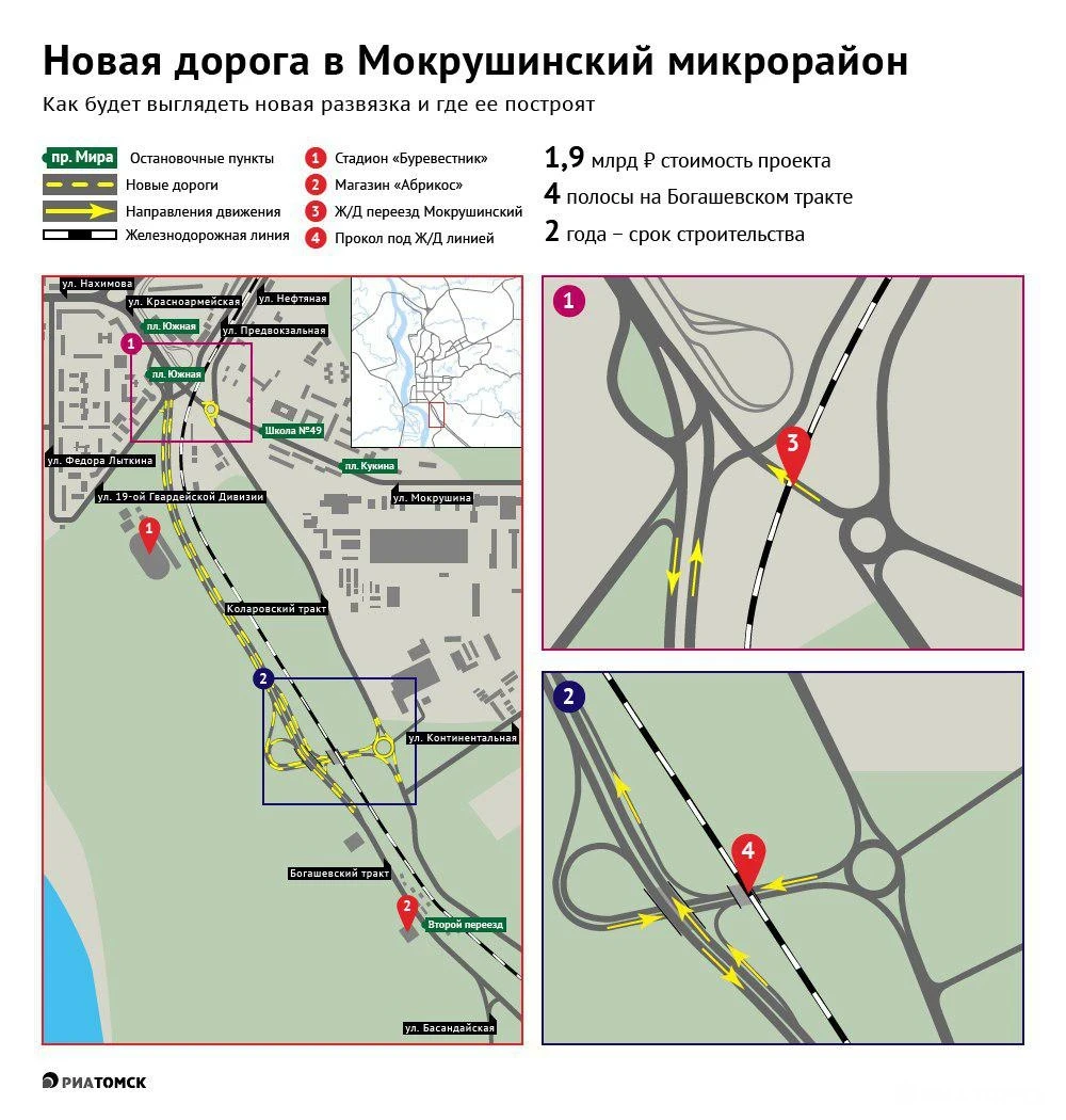 Строительство развязки, которая поможет решить проблему транспортной доступности микрорайона на улице Мокрушина в Томске, начнется в 2017 году. Как будет выглядеть новая развязка – в инфографике РИА Томск.