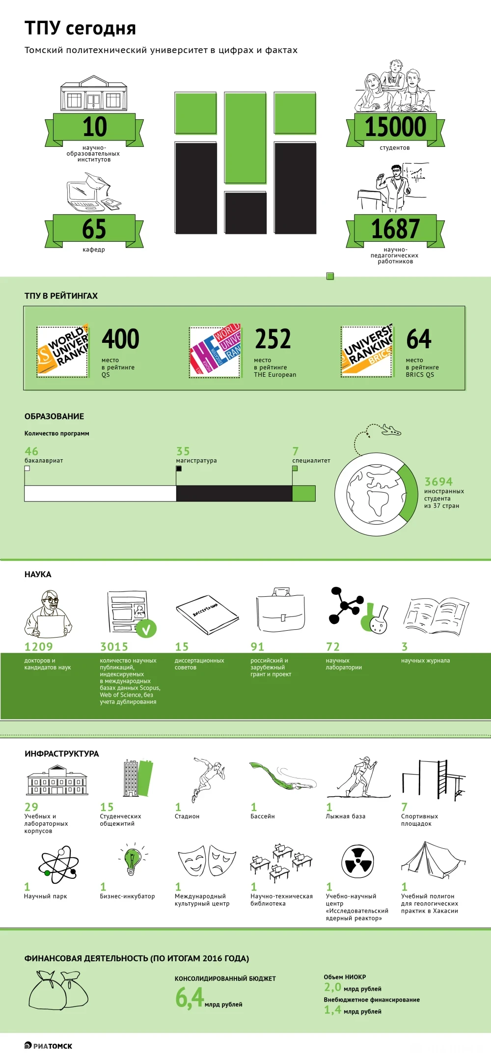 Пятнадцать тысяч студентов обучаются в настоящее время в Томском политехническом университете по более чем 80 образовательным программам. Какие возможности предоставляет вуз своим студентам и сотрудникам для учебы, научных исследований и активного отдыха – узнайте из инфографики РИА Томск.
