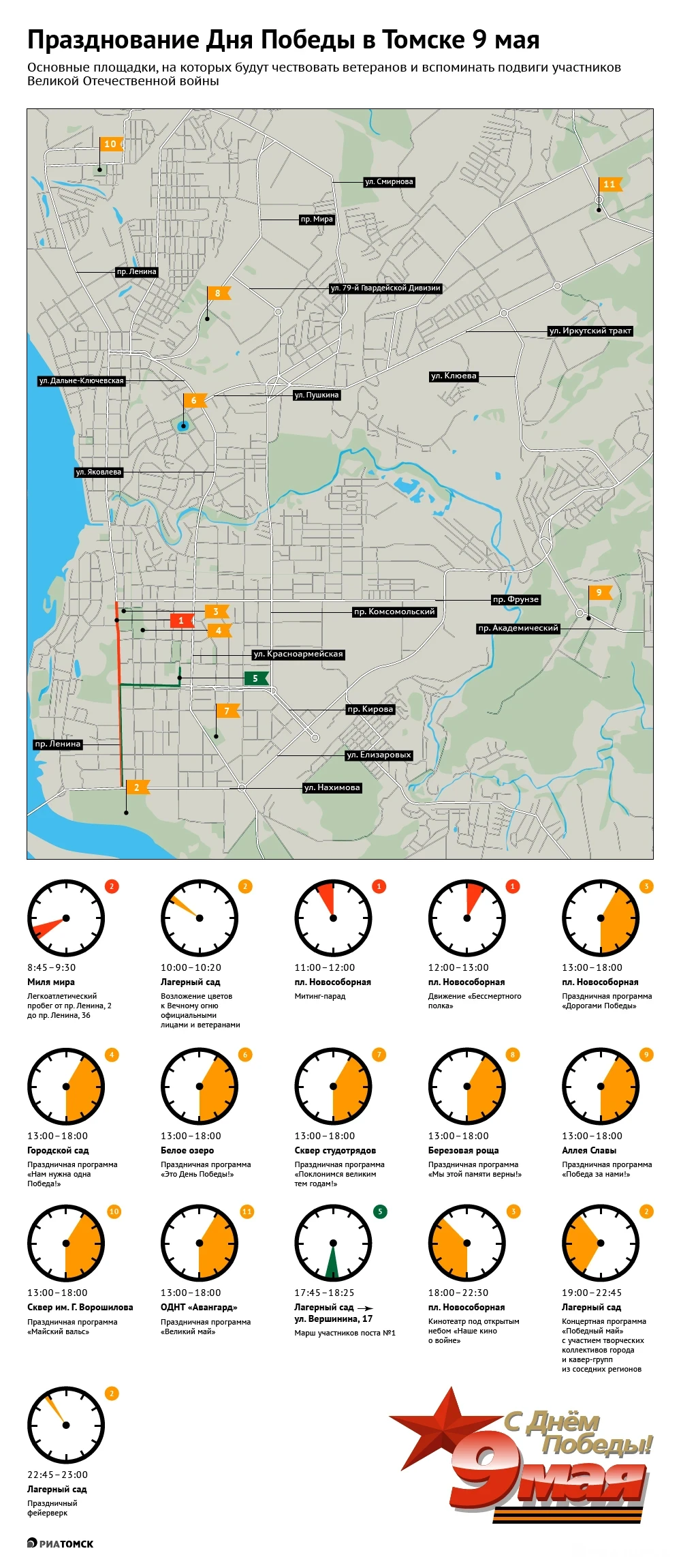 Мероприятия, посвященные Дню Победы, запланированы во всех районах Томска. Подробнее о том, где томичи смогут отметить 9 Мая, – в инфографике РИА Томск.