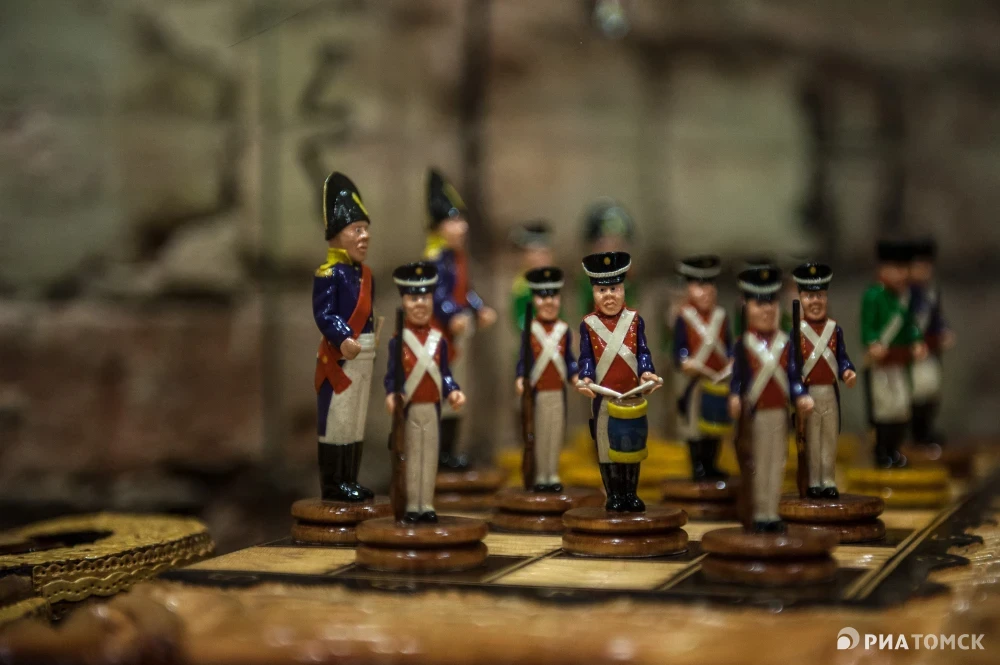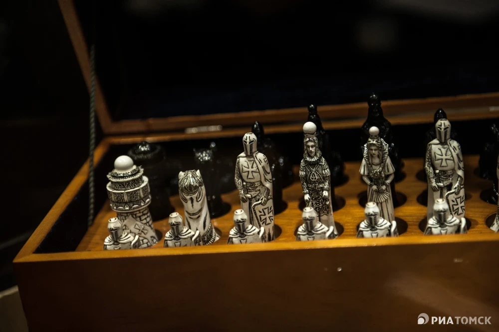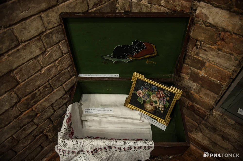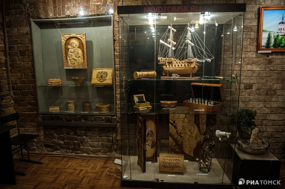 Выставка "Сувениры из зоны" открылась в томском мемориальном музее "Следственная тюрьма НКВД" в рамках акции "День открытых дверей" Федеральной службы исполнения наказаний (ФСИН). Шахматные фигуры из хлебного мякиша, сундуки,оплетенные соломкой и берестой, и другие экспонаты – в фотоленте РИА Томск.