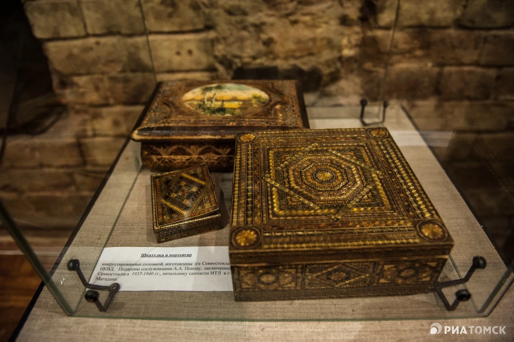 Эти шкатулки и портсигар, инкрустированные соломкой, были изготовлены в 1937-1940 годах в Магадане. В томский музей НКВД их передала дочь одного из заключенных тех лет.