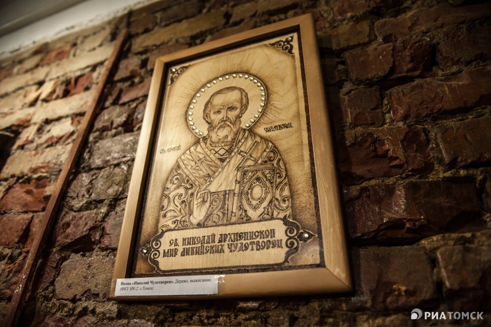 Среди экспонатов немало икон. "Открываются в учреждениях церкви – они тоже украшаются… И иконы изготавливаются самими заключенными", – пояснил собеседник агенства.