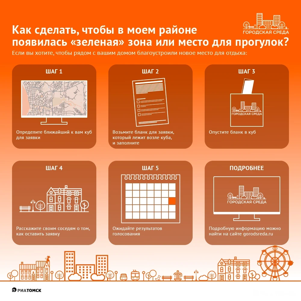 Томичи до 9 февраля могут оставить свои предложения о том, какие парки, скверы, бульвары будут благоустроены в Томске в 2018 году в рамках федерального проекта "Формирование комфортной городской среды". Как это сделать – в инфографике РИА Томск.