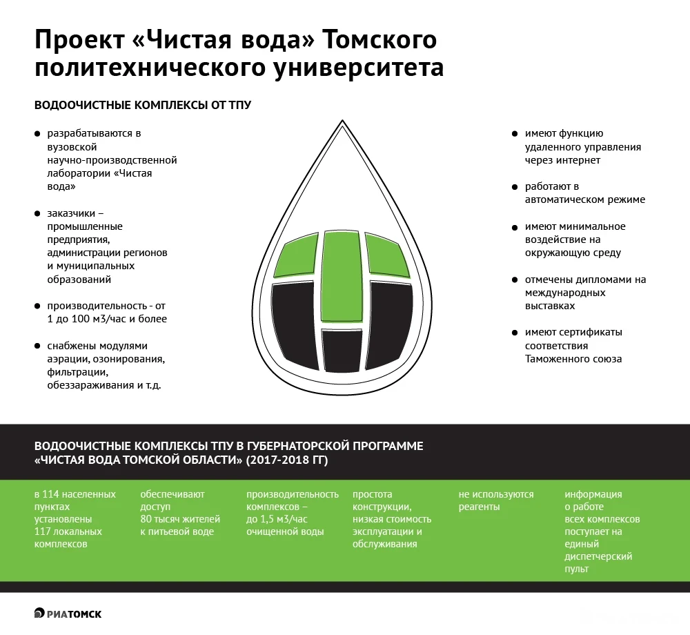 Ученые Томского политехнического университета более 30 лет создают установки для очистки воды. В общей сложности они собрали около 250 водоочистных комплексов. Какими характеристиками обладают эти разработки – в инфографике РИА Томск.