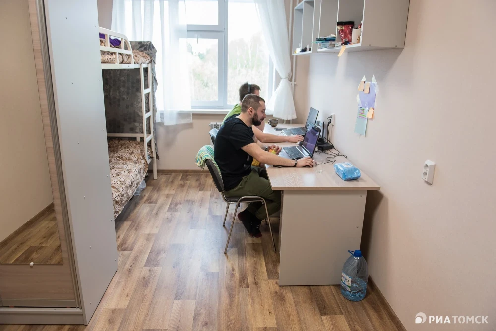 "Есть, где постираться, это бесплатно. Рядом есть комната с сушилками, где можно сушить вещи. Такой блок – один на этаж. Еще есть комната с компьютерами и интернетом, где можно поучиться. А если устанешь, можно выйти погулять к реке", – продолжает рассказ собеседник агентства.