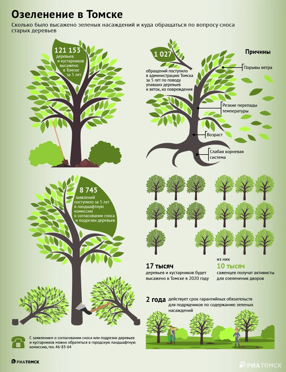 Семнадцать тысяч деревьев и кустарников планируется высадить в Томске в 2020 году, большую часть саженцев – 10 тысяч –  получат активисты для озеленения дворов. Подробнее - в инфографике РИА Томск.