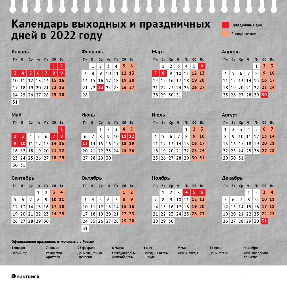 Как будем отдыхать: проект производственного календаря на 2022г