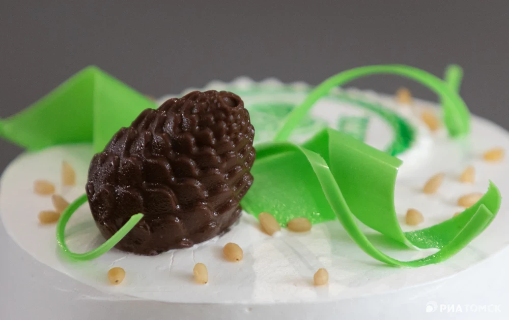 "Муссовые торты в последнее время стали очень популярны. В моем торте сочетаются классический шоколадный бисквит с нотками кедрового ореха с легким йогуртовым муссом, как старый деревянный всеми любимый Томск в современном модерновом образе", – рассказала кондитер из Северска.