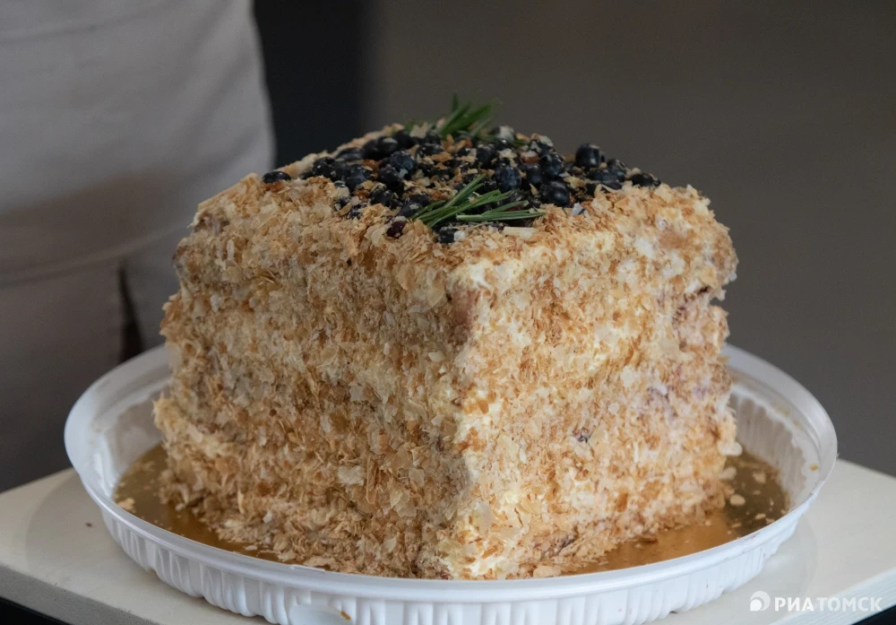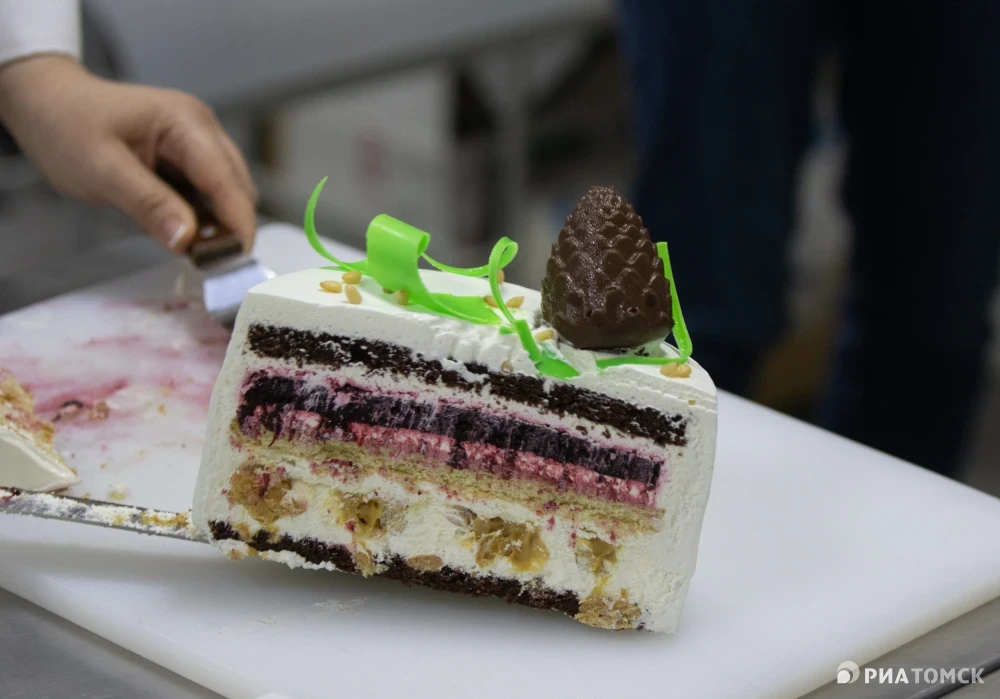 А кондитер из "Буланже" использовала для своего муссового торта не только бакчарскую жимолость, но и продукцию местных производителей – кедровое молочко и варенье из сосновых шишек. А бисквит сделан из миндальной муки.
