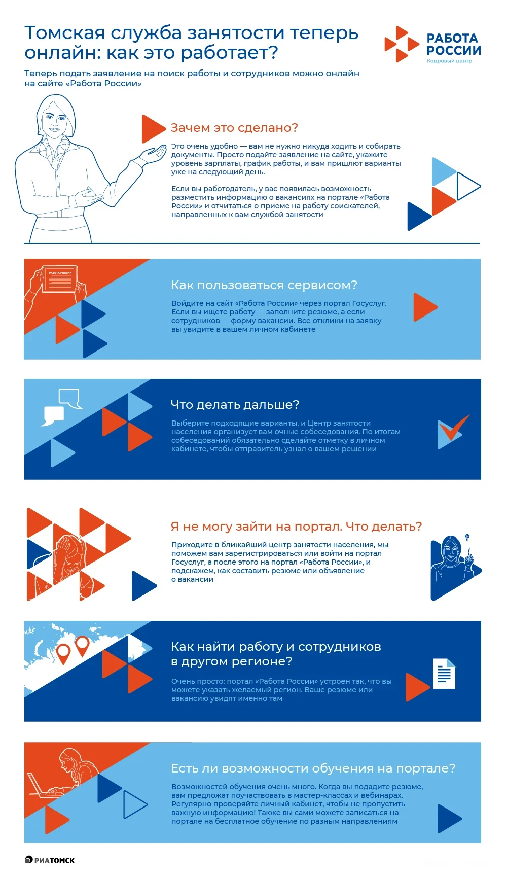 Томская служба занятости перешла на новый формат – теперь подать заявление на поиск работы и сотрудников можно онлайн на сайте "Работа России". Рассказываем, как это работает.