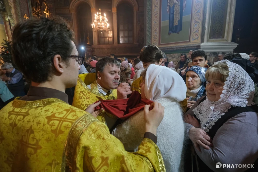 Православные 7 января отмечают Рождество Христово. В ночь на воскресенье в томских храмах прошли традиционные рождественские службы. На одной из них – в Петропавловском соборе – побывал фотокорреспондент РИА Томск.