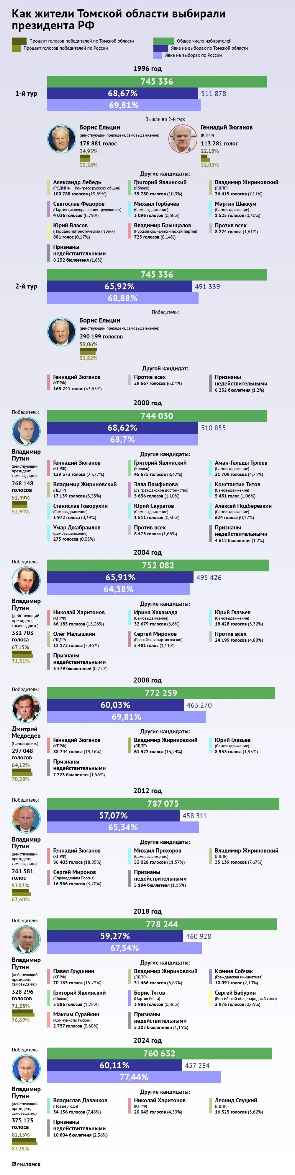 Как томичи выбирали президента РФ. Статистика с 1996 по 2024 год