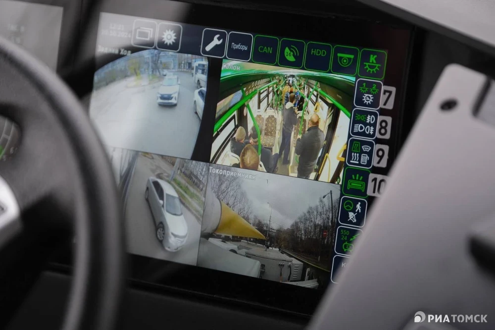 В электробусе девять камер наружного наблюдения. Среди них – камера, которая следит за токоприемниками. Также есть возможность поставить дополнительную систему еще на четыре камеры.