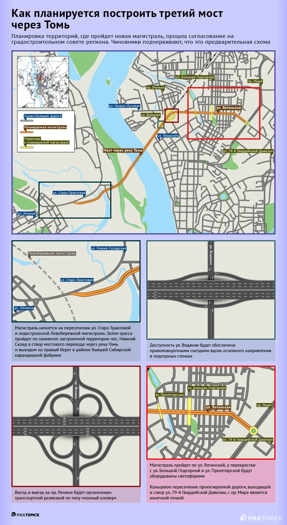 Областные власти определились с расположением 3-го моста через Томь в Томске. Выбран вариант, который может напрямую связать Нижний Склад и бывшую "карандашку". А вот с подъездными путями определенности меньше. Предварительная трассировка магистрали, предложенная проектировщиками, – в инфографике.