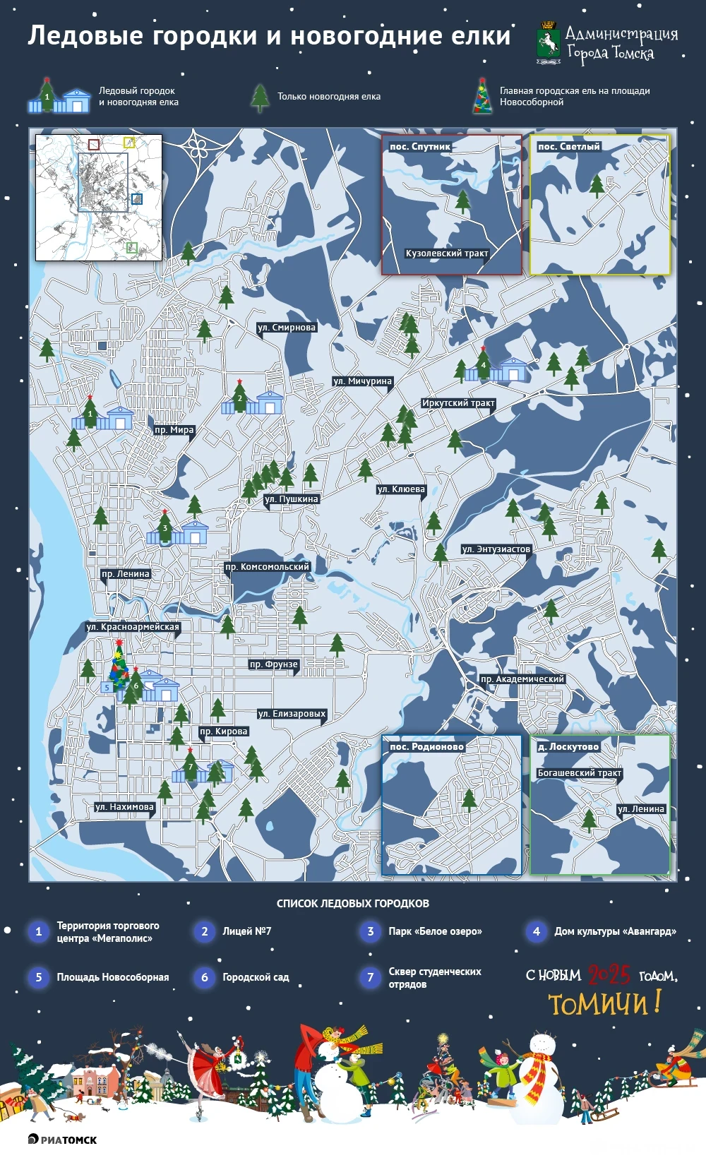 Где появятся ледовые городки и новогодние елки в Томске в 2024г