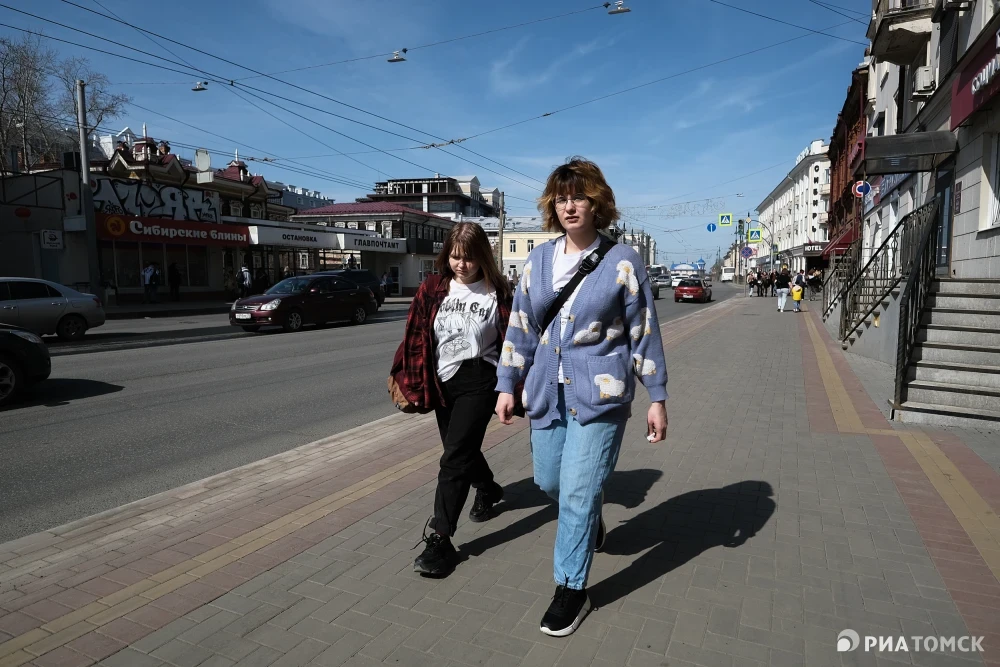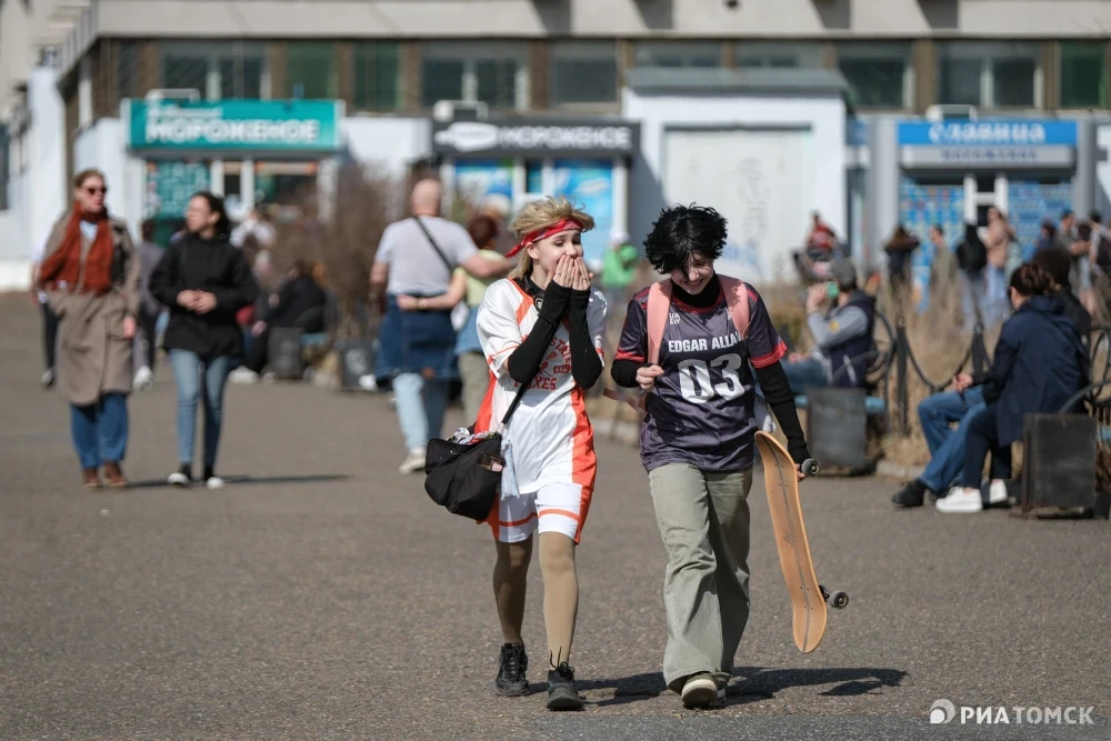 Настоящее летнее тепло пришло в Томск в середине апреля. Столбики термометров в субботу днем показывали до плюс 25 градусов. Томичи воспользовались моментом сменить куртки на футболки. Репетиция лета – в фотоленте РИА Томск.