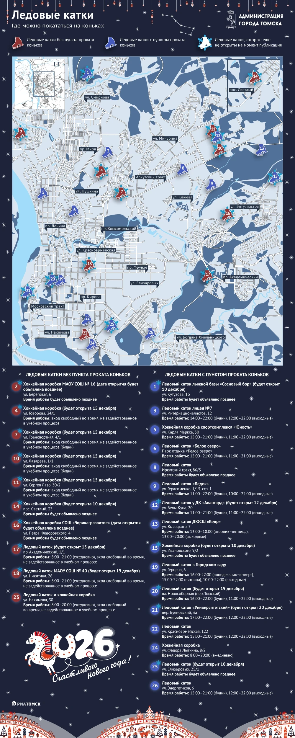 С прокатом и без: как работают ледовые катки Томска зимой 2025/2026