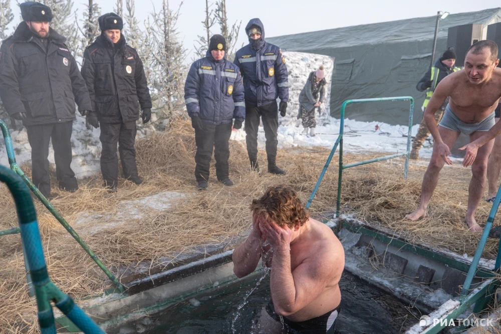 Крещенские купания в Томске в 2026 году стали действительно экстремальным испытанием – на улице мороз за 30.  Кого из томичей не остановила некомфортная  погода – смотрите на фото РИА Томск.