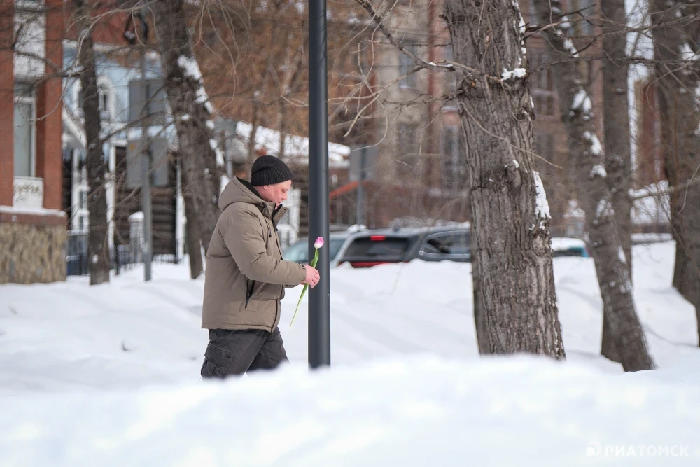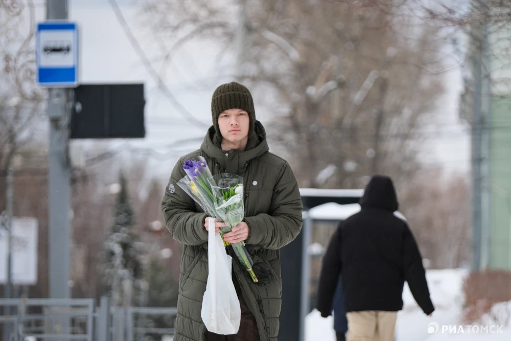 Это был бы обычный снежный день в сибирском городе, если бы не традиция Международного женского дня – пока не поздно, купить тюльпаны! 8 Марта – день поздравлений самым близким, кто ждет букеты дома. Приметы праздника – в фотоленте РИА Томск.